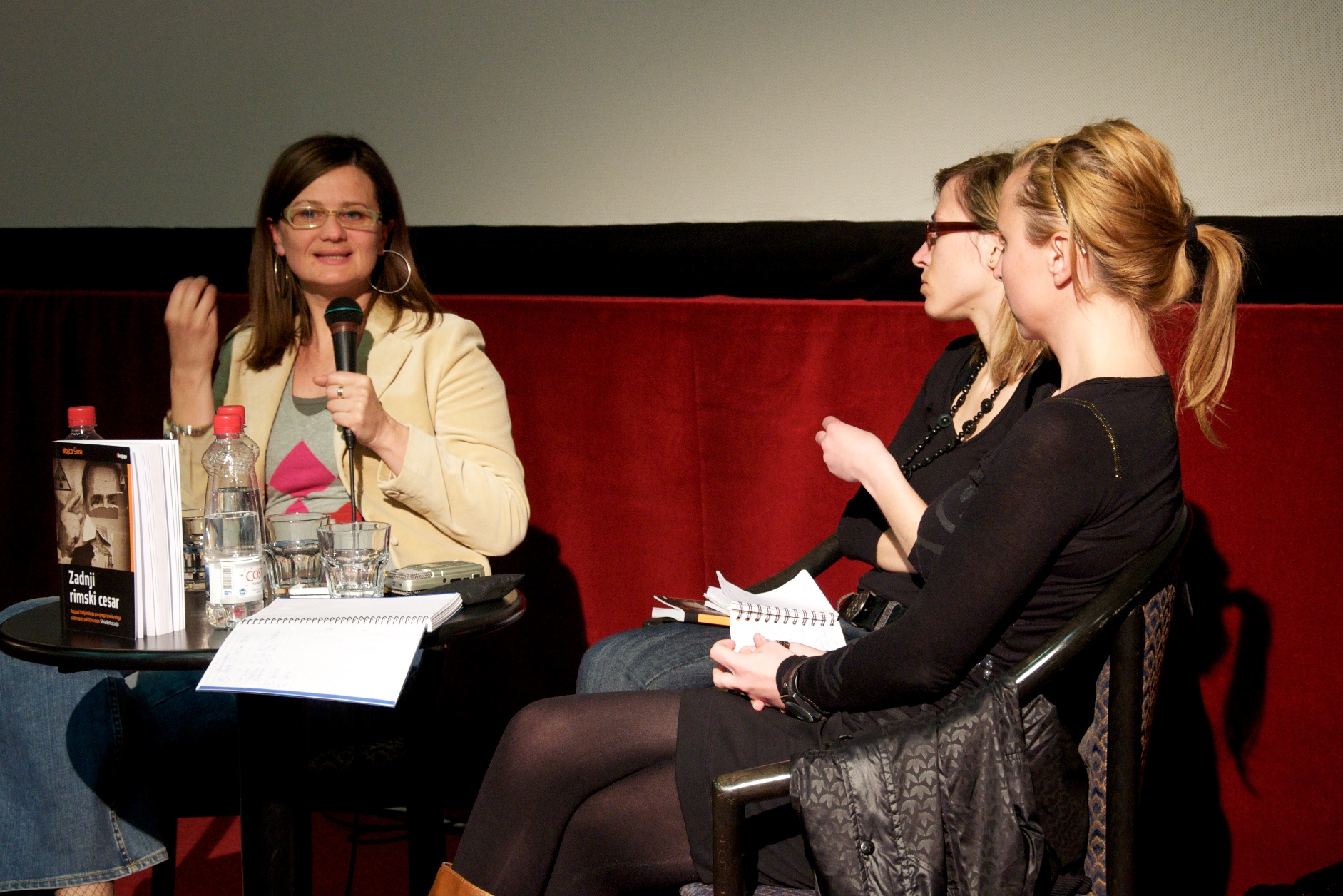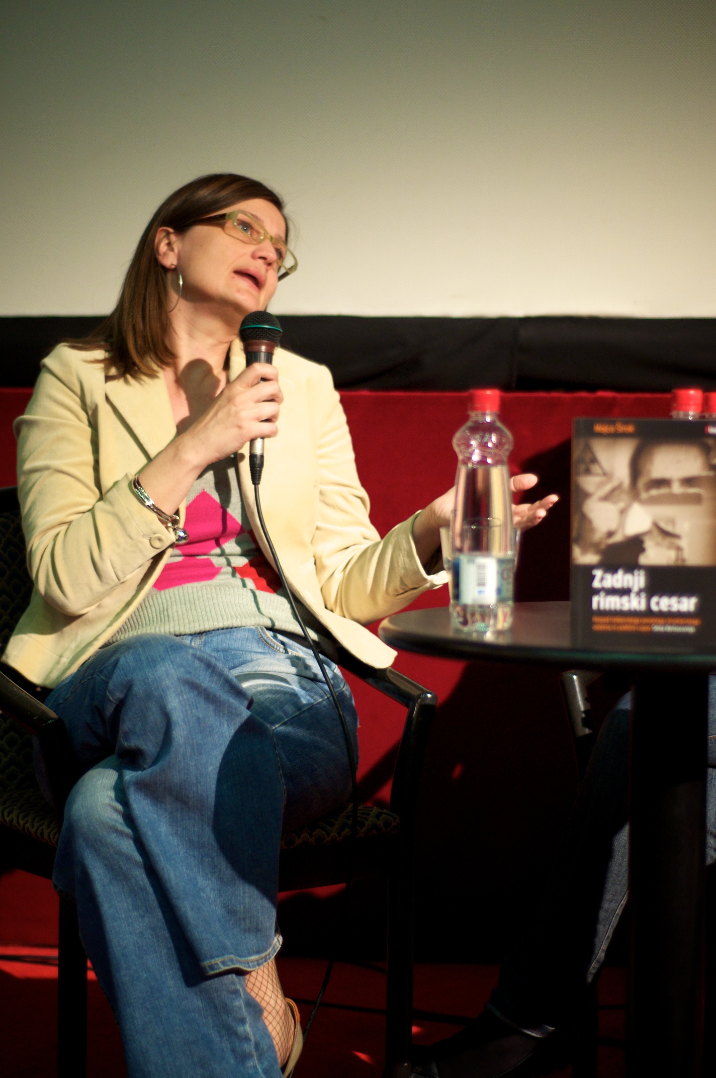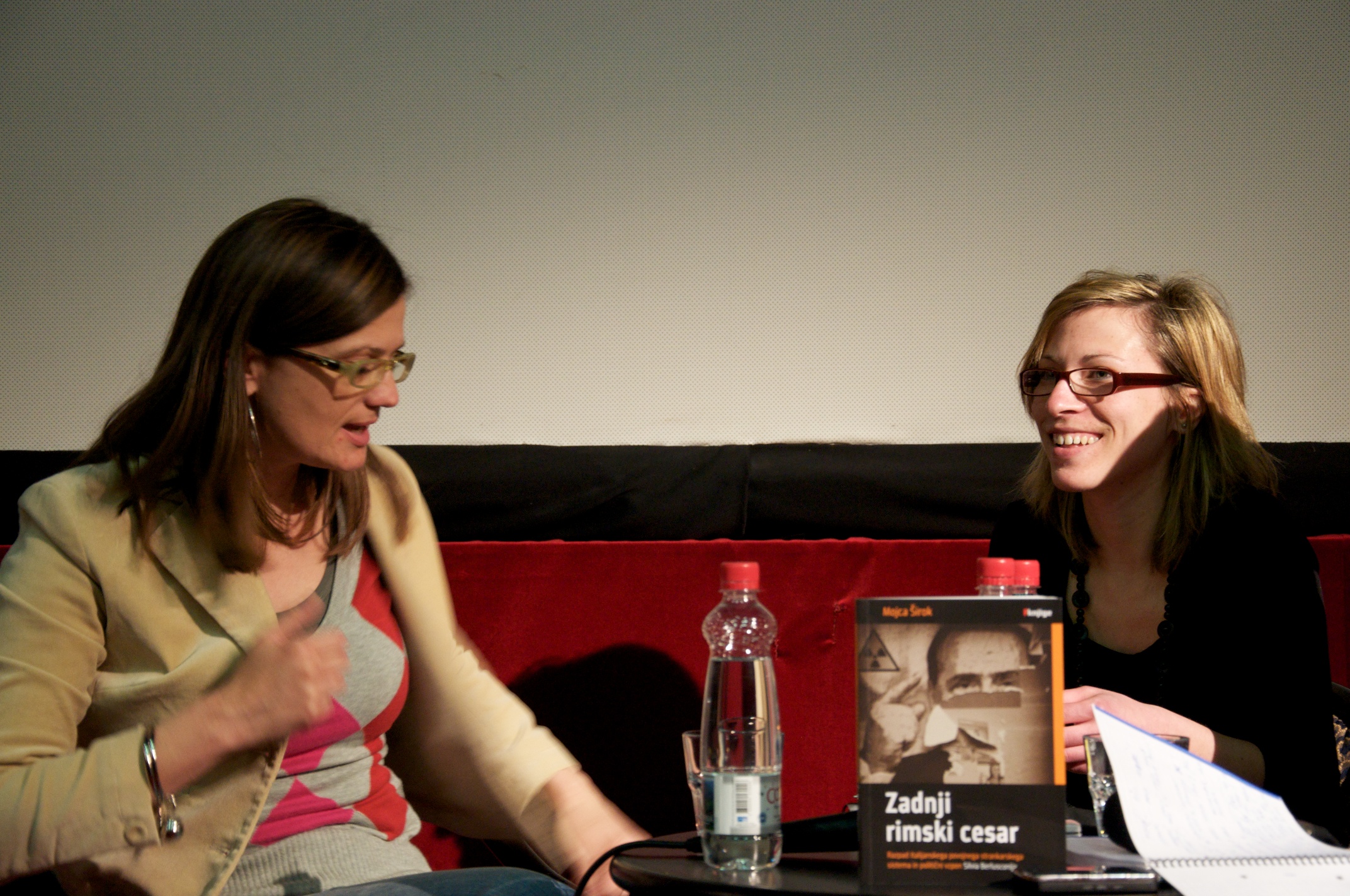 Odmevni glasovi in odmevno delo Mojce Širok z naslovom Zadnji rimski cesar, ki odstira politični, medijski, in gospodarski vzpon Silvia Berlusconija. Mojca Širok, novinarka, doma iz Nove Gorice, piše o Italiji od leta 1993. Njeno zanimanje sega na politično, gospodarsko, versko in ne nazadnje zgodovinsko področje. O perečih tematikah, ki zaznamujejo italijansko družbo, je poročala za Radio Študent in tednik Mladina. Dve leti je na nacionalni televiziji vodila Odmeve in bila odlikovana z dvema viktorjema za najboljšo voditeljico informativnih oddaj. V voditeljski vlogi smo jo nedavno spremljali tudi na TV Dnevniku.